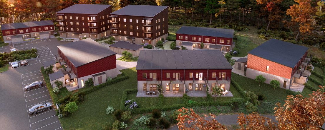 20 radhus och 32 lägenheter. Planerad säljstart första kvartalet 2026.