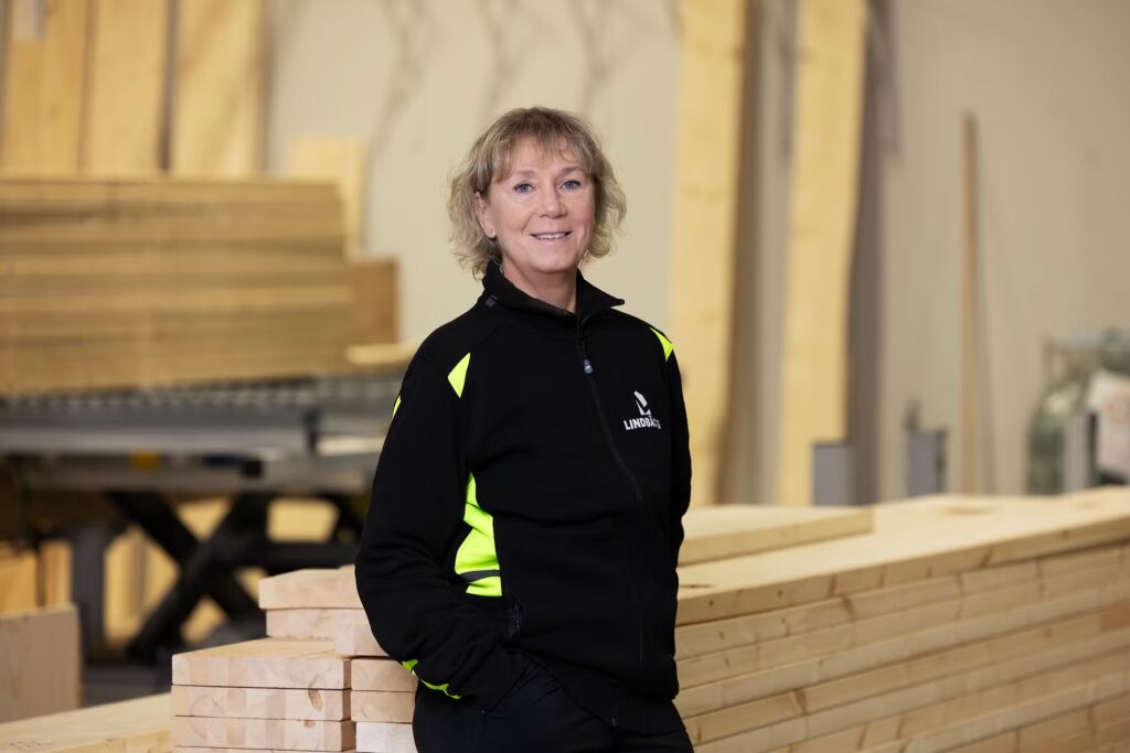 – Vi mer än halverar koldioxidutsläppen jämfört med traditionellt byggande med stål och betong, så du får marknadens mest hållbara leverans, säger Annica Lindbäck, hållbarhetsansvarig, Lindbäcks Bygg.