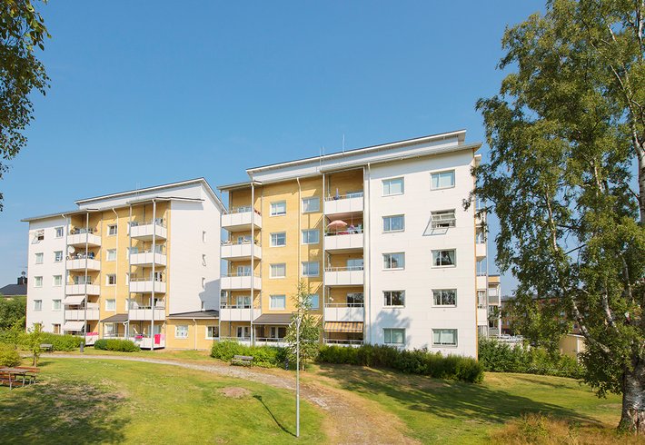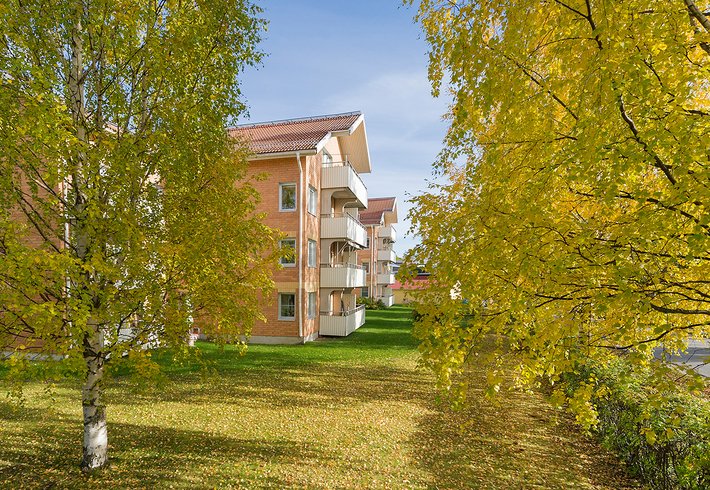 På Storgatan bara en kilometer från Piteå centrum har vi en fastighet med totalt 38 lägenheter. Varje lägenhet har ett förråd på cirka 6 kvm beläget på vindsvåningen.