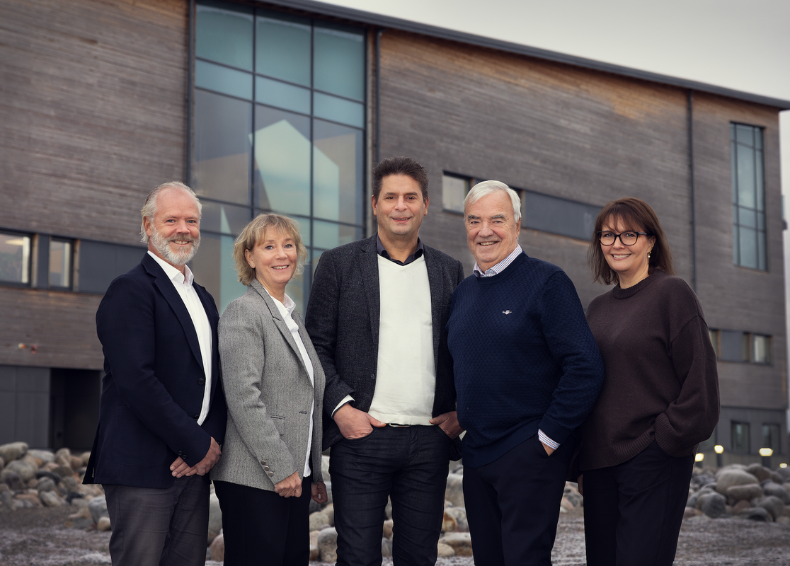 I bild visas Stefan Lindbäck, vd Lindbäcks Group och delägare, Annica Lindbäck, styrelseordförande, hållbarhetsansvarig och delägare, Hans Lindbäck, vd Lindbäcks Fastigheter och delägare, Erik Lindbäck, delägare, och Anna Bergsten, vice vd Lindbäcks Bygg och delägare