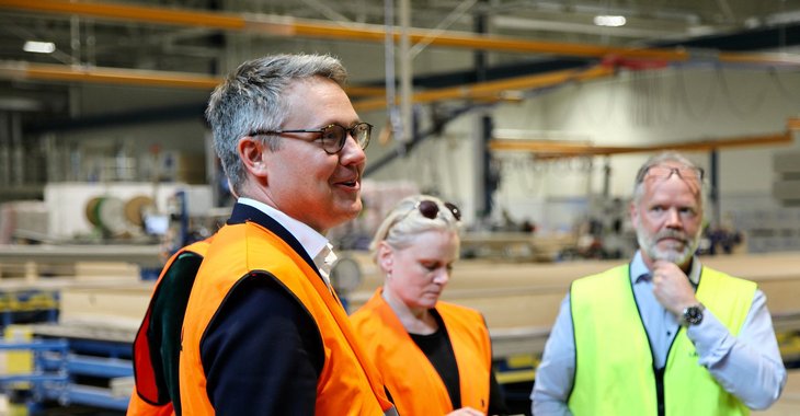 Bostadsministern besökte under tisdagen Lindbäcks husfabrik på Haraholmen i Piteå. Han fick en guidad tur, men också några medskick på saker som Lindbäcks anser att regeringen borde titta på. Efter rundvandringen var ministern väldigt glad över det han sett: