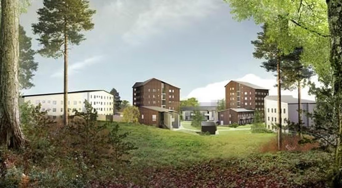 Lägenheter i 2 till 6 våningar med tegelfasad fristående samlingslokal med tvättstuga och bastu.