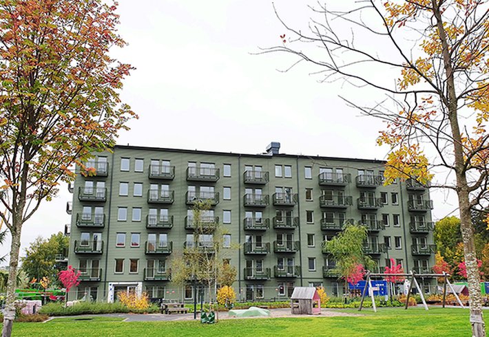 Runt huset finns en park med plats för lek och gemenskap. Inom promenadavstånd finns stora grönområden, god service och bra kommunikationer.