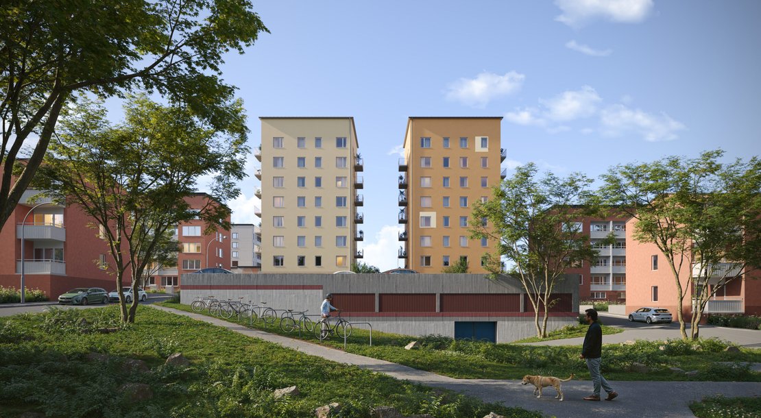På Visbyringen och Osbyringen byggs fyra stycken punkthus med planerad inflytt 2026. Husen som är i åtta våningar har putsade fasader och solceller på taken. Mellan husen och på delar av det övre garageplanet kommer en ny, grön gård med plats för lek och umgänge uppföras.