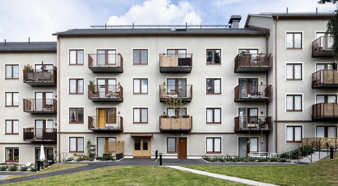 På höjden ovanför Rågsveds tunnelbanestation ligger Säterhöjden. De två husen, med totalt 70 välplanerade lägenheter, är ritade av Nyréns Arkitekter inom ramen för konceptet Stockholmshusen.