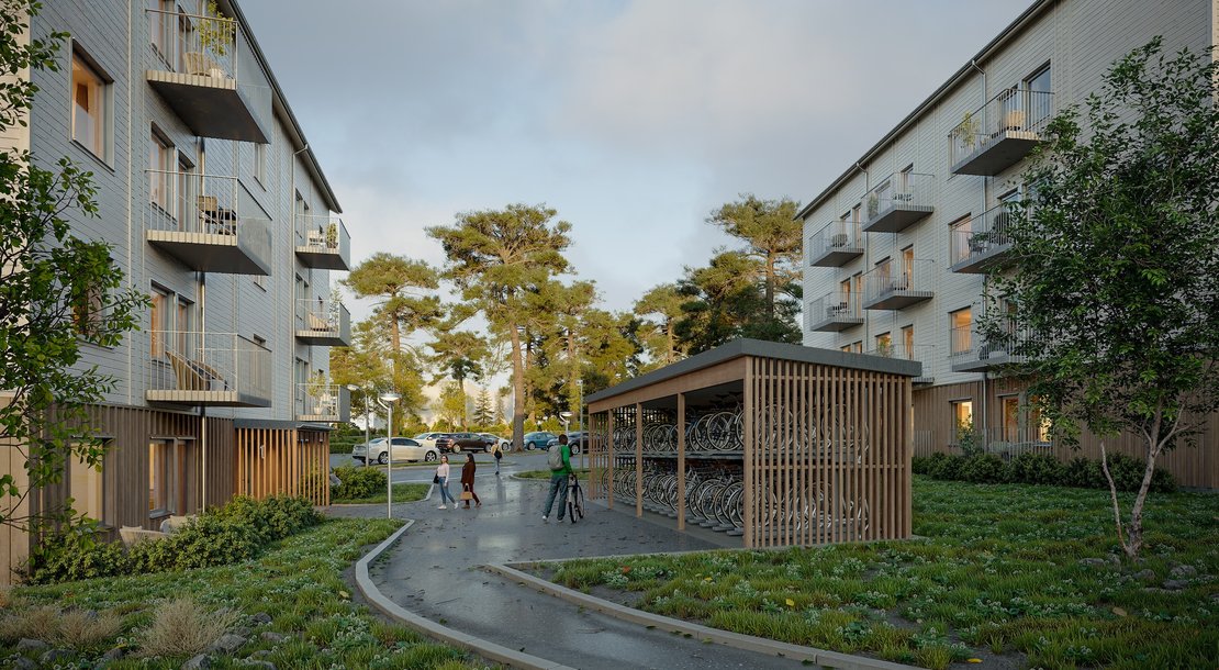 I kvarteret Tallen, i stadsdelen Norr i Östersund, uppförs 78 lägenheter om 2–4 rum och kök, fördelade på fyra huskroppar. Byggnaderna har ett tydligt släktskap med den omgivande bebyggelsen vad gäller proportioner, våningsantal och färgsättning. Samtidigt tillför den värmebehandlade fasadpanelen och sadeltaken nya inslag som bidrar till ökad variationsrikedom i området.
