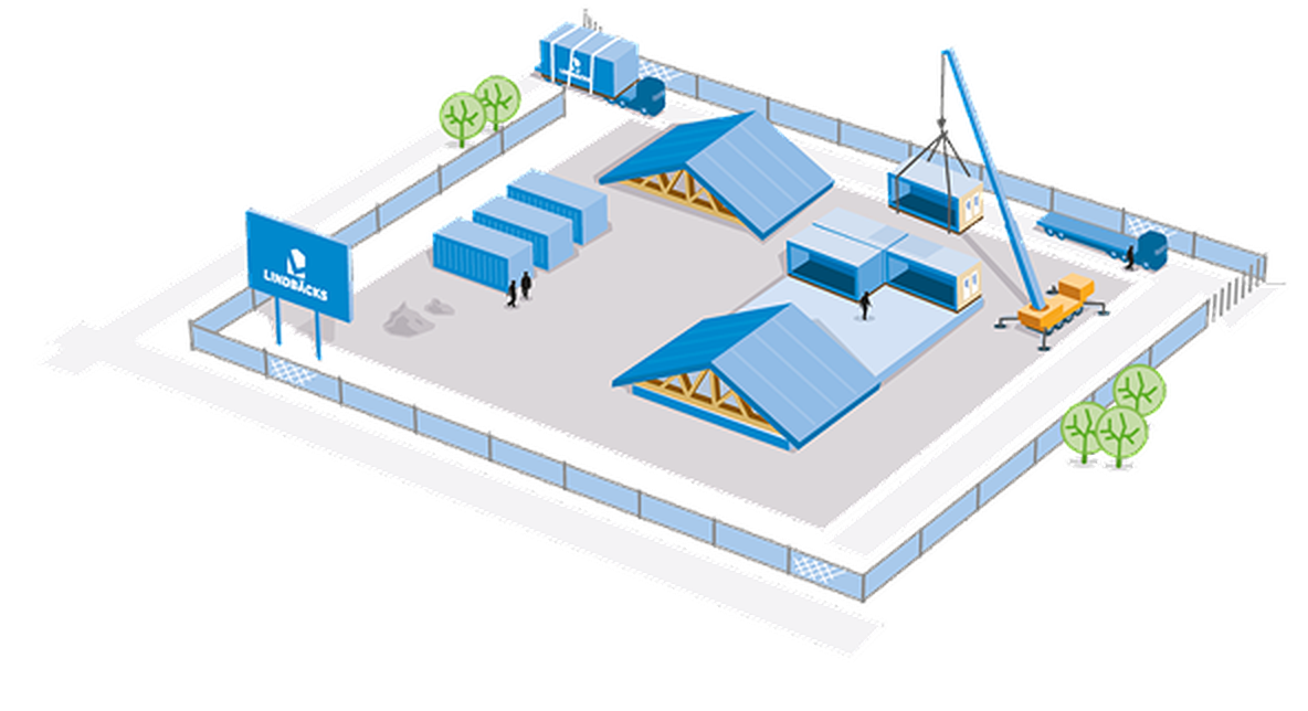 The foundation is completed before the modules are transported to the construction site, where the roof is made. The modules are assembled and the roof is lifted in place. We finish off with supplementary internal and external work, turning the modules into turnkey buildings.